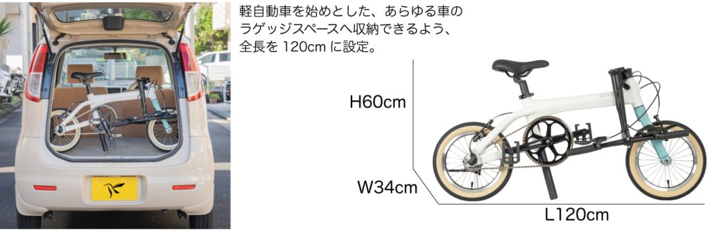 なんと、こちらの自転車は軽自動車の横幅にぴったりサイズに作られています。